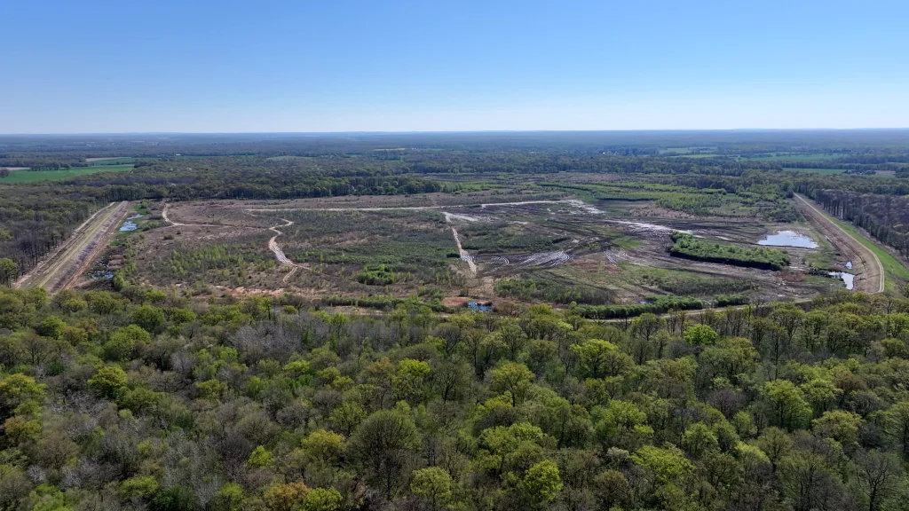 Le chantier est lancé : le site à été intégralement défriché et des mares temporaires ont été créées pour les batraciens. Il reste à sécuriser et renforcer les ouvrages hydrauliques avant la remise en eau de l’étang. Enfin, l’immersion progressive marquera le véritable retour de l’eau et, par conséquent, celui d’une biodiversité exceptionnelle.