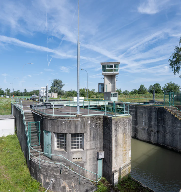 À la confluence du Rhône et du Rhin, l’écluse de Kembs se dresse comme un témoin rare et précieux de l’union entre architecture visionnaire et génie hydraulique. Construite dans les années 1960, elle abrite la seule réalisation de Le Corbusier dans le domaine fluvial, faisant de ce site un jalon unique dans l’œuvre de celui qui est considéré comme l’un des plus grands maîtres de l’architecture du XXe siècle.